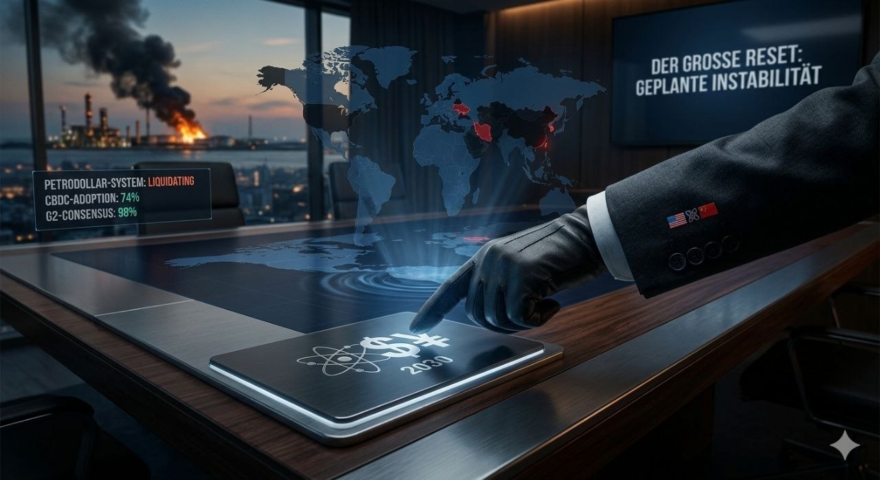 Die Lösung: Die Einführung digitaler Zentralbankwährungen (CBDCs), die temporär an Gold gekoppelt werden. Dies ist kein freier Goldmarkt, sondern ein „Anker“, um die Dollar-Blase kontrolliert abzuatmen.